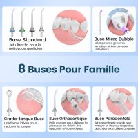 AUIEI Jet Dentaire Hydropulseur Portable Water Flosser, Irrigateur Oral 5 Modes et 8 Buses,Réservoir 300ML, USB Chargé, Étanche IPX7,Convient Gencive Sensible,Blanc